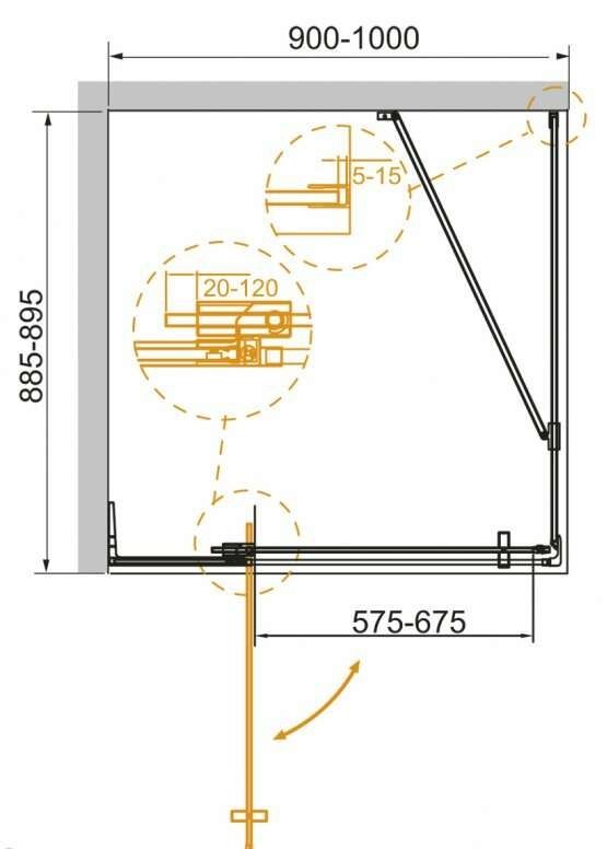 Особенности: надёжная конструкция петли SLIDER позволяет регулировать ширину входа душевого ограждения в диапазоне 10 см.