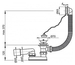 - Для ванн с выпускным отверстием Ø52 мм
