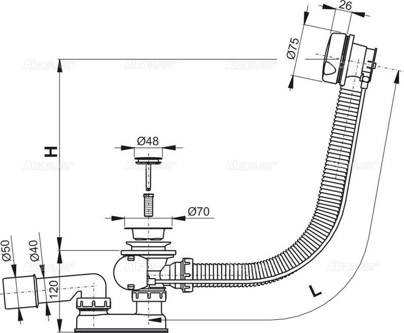 - Для слива воды из ванны в канализационный сток