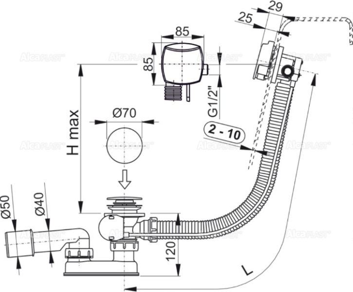 - Слив-перелив система с функцией наполнения ванны