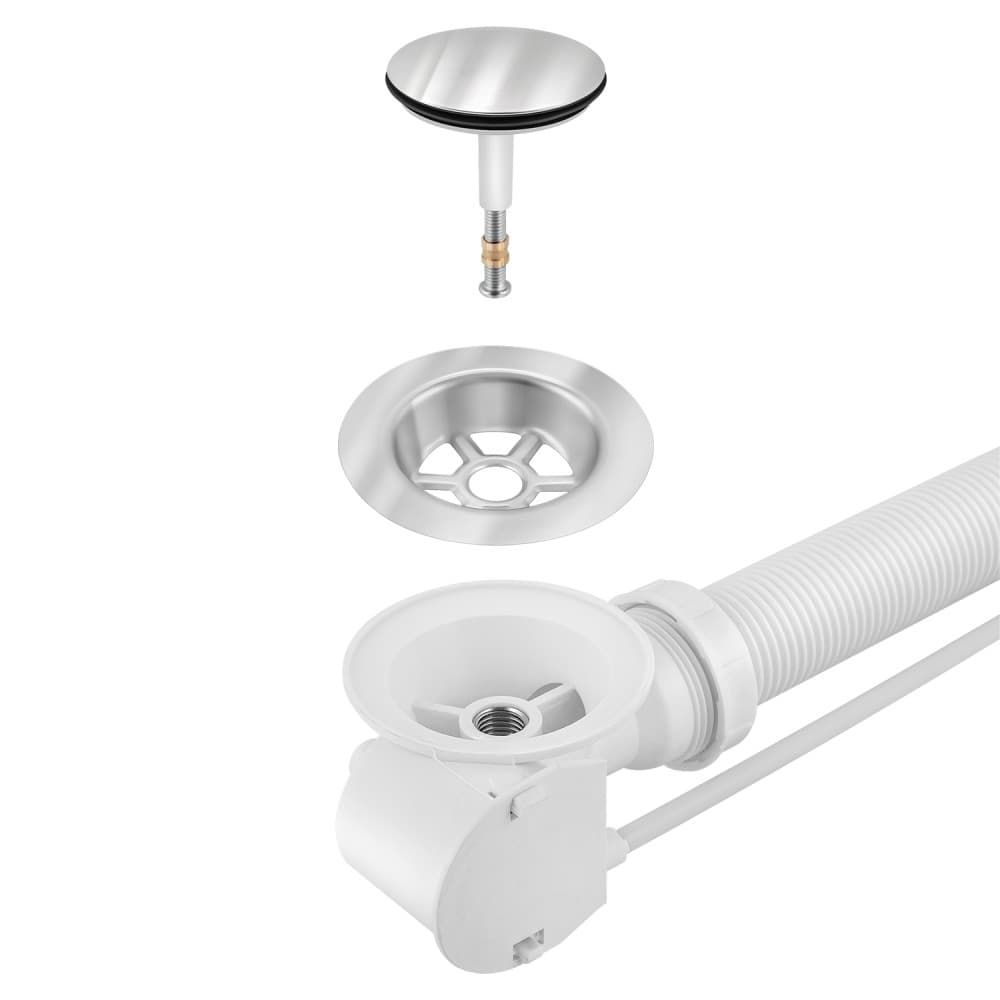 Полуавтоматический слив-переливом 60 см. Металлическая хромированная поворотная ручка предотвращает "скручивание" и увеличивает срок его службы.Подвижные элементы гидрозатвора позволяют при установке, задать любой угол поворота сливного патрубка.Трехстороннее уплотнение отверстия слива устраняет попадание воды на незащищенные участки материала ванны. Цвет сливной пробки и крышки перелива хром. Слив-перелив с универсальным отводом: 40/50 мм.