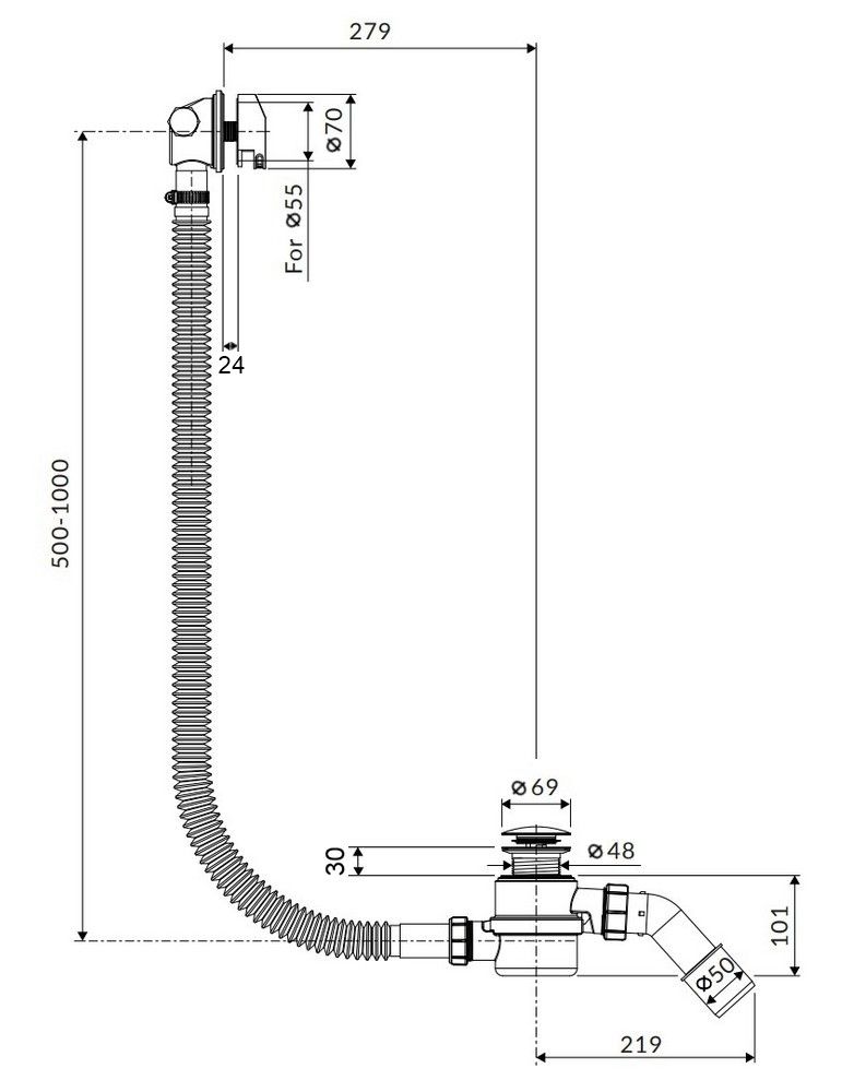 Слив-перелив click-clack для ванны с функцией очистки сверху.