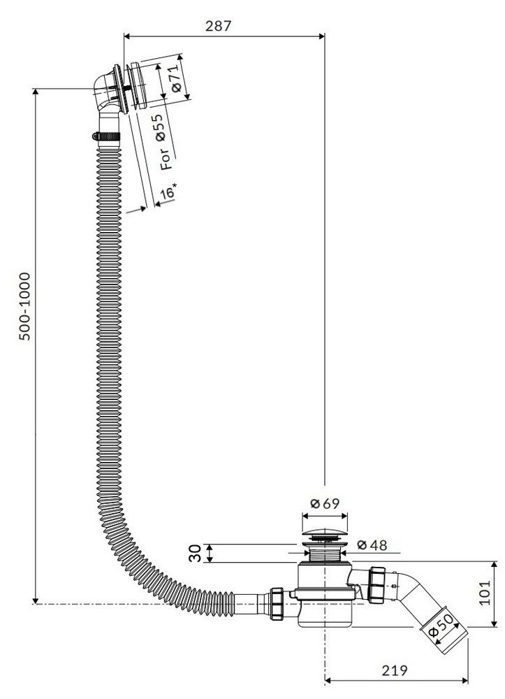 Слив-перелив click-clack для ванны с функцией очистки сверху.