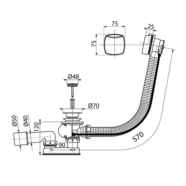 Слив-перелив Koller Pool для ванны, полуавтомат, 57 см, хром, B70CLPAСлив-перелив для ванны полуавтомат
