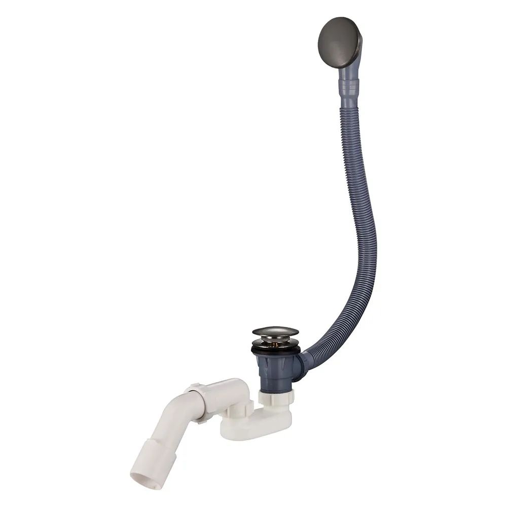 Слив-перелив 1 1/2"х40/50, с переливом и автоматическим сливом для ванн и глубоких душевых поддонов. Конструкция сифона позволяет прочищать сифон, не демонтируя его. С отводом в канализацию.