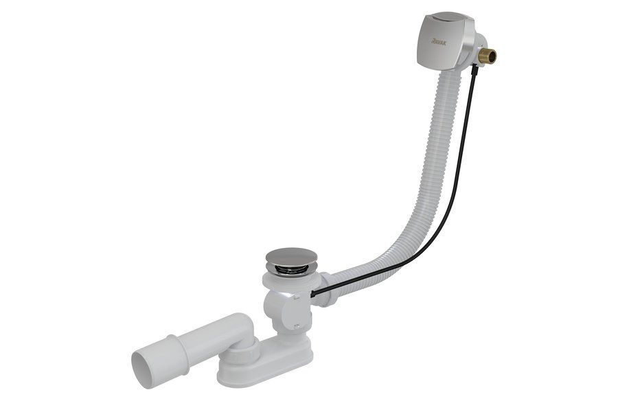 Вы можете выбрать сточный комплект для ванны с переливом длиной 570 мм или 800 мм с управлением сливом при помощи тросика или механизмом ClickClack. В состав каждого сточного комплекта входит сифон