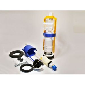 Арматура для унитаза Santek. В комплекте: сливной механизм, однорежимная кнопка слива, крепеж, клапан подачи воды с нижней подводкой на 1/2 дюйма, латунь.