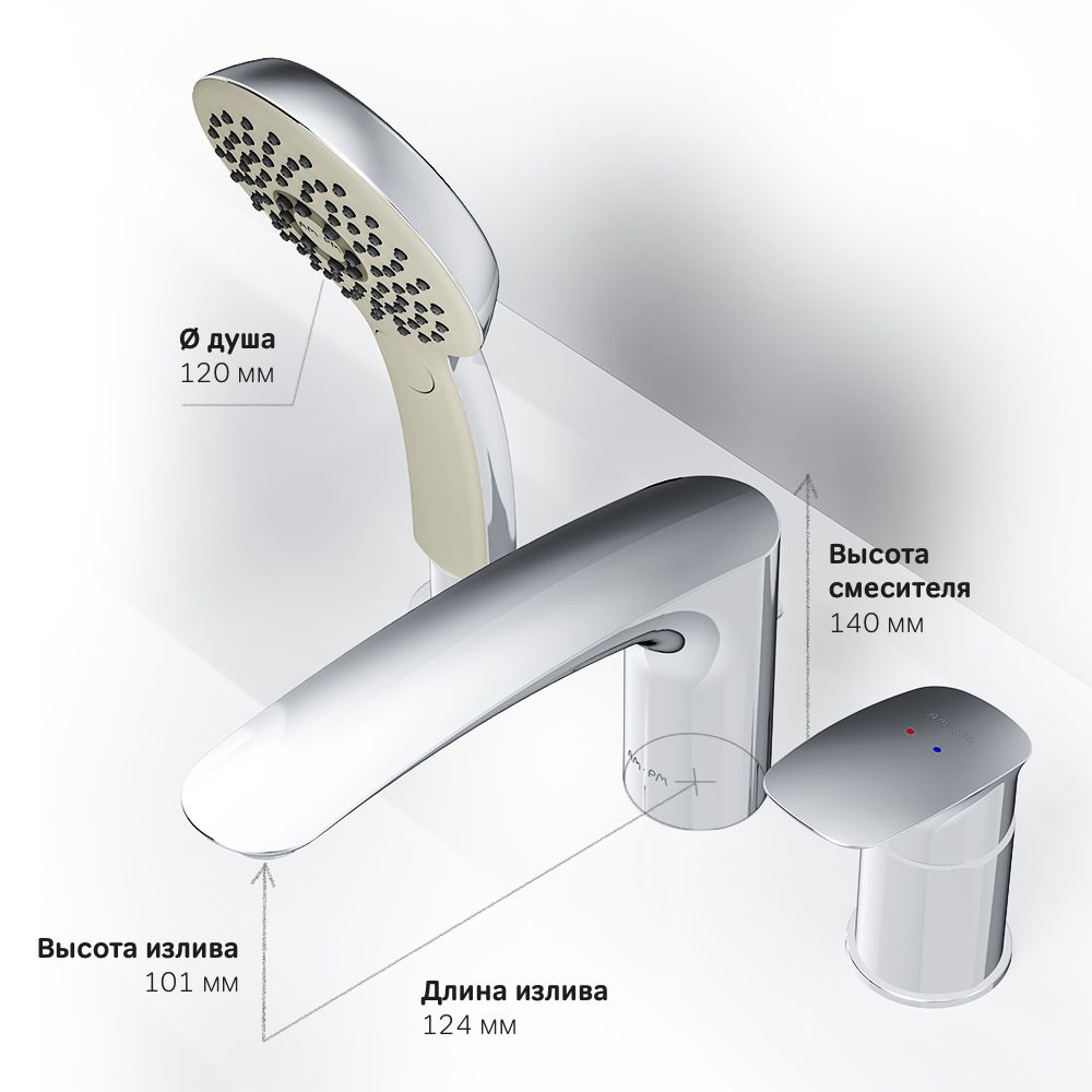 Инновационное пополнение коллекции Inspire V2.0: трехсекционный смеситель на борт ванны в неповторимом дизайнерском решении для тех, кто идет в ногу со временем.Уникальное решение: смеситель оборудован ручным душем для того, чтобы вы могли оценить все преимущества SPA прямо у себя дома. Три режима ручного душа: Spray, EnerJet, Spray + Massage; переключатель режимов Simple Switch Push. Удивительно тактильный ручной душ за счёт материала поверхности soft touch. Функция Rub&Clean для легкой очистки душевых форсунок. Идеальное соотношение пропорций: средняя высота излива и премиальный размер ручного душа обеспечивают максимальный комфорт использования.Эксклюзивная разработка для АМ.РМ: специально спроектированный керамический картридж SoftMotion 35 мм обеспечивает низкий уровень шума, выдерживает любые перепады давления в водопроводной сети