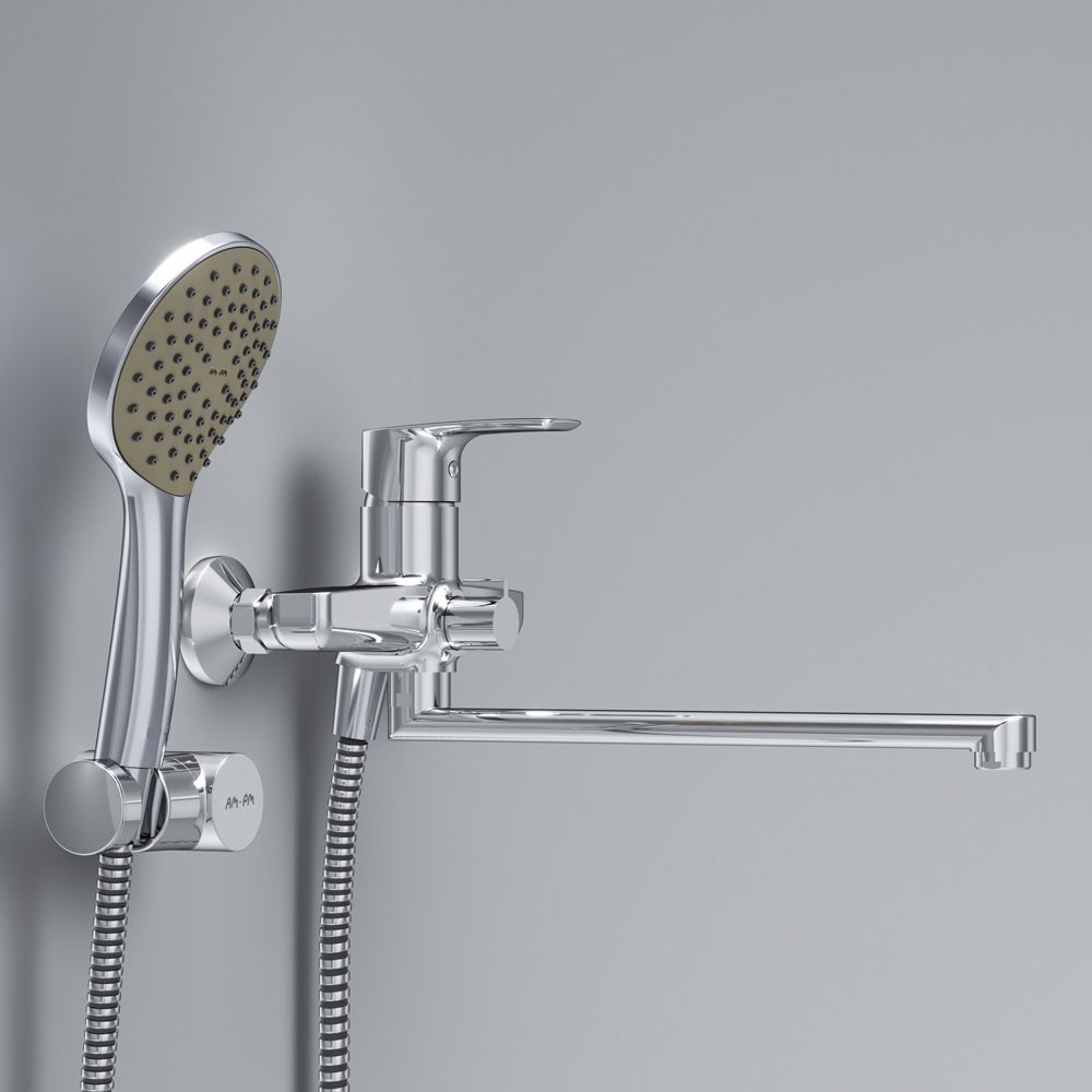 Эксклюзивная разработка: специально спроектированный для АМ.РМ керамический картридж SoftMotion 35 мм обеспечивает оптимальную регулировку температуры, а также позволяет выдерживать любые перепады давления. Точная инженерия для Вашего комфорта: благодаря обширной зоне движения ручки управлять температурой воды еще проще.В комплекте душевой набор: стильный ручной душ 120 мм 1 режим, настенный держатель с регулировкой угла наклона, душевой шланг с защитой от скручивания.