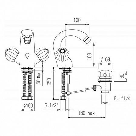 Смеситель для биде, бронза Cezares ROYAL PALACE-BS1-02-MS купить