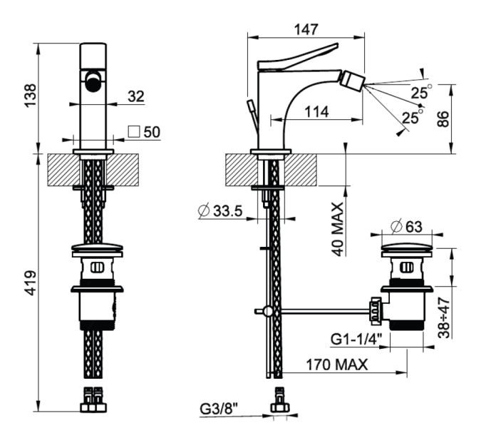 Оснащенный удобным рычагом управления, смеситель Gessi Rilievo обеспечивает плавную регулировку температуры и напора воды. В комплекте предусмотрен донный клапан, который гармонично дополняет общий дизайн изделия и повышает удобство эксплуатации. Благодаря продуманной конструкции, смеситель легко устанавливается и совместим с большинством стандартных биде.