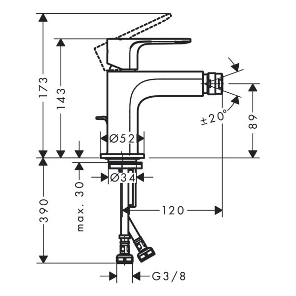Смеситель для биде Hansgrohe Rebris E 72210670 черныйвыступ 120 мм аэратор с шарнирным соединением тип струи: обычная струя максимальный расход воды при 3 бар: 5 л/мин керамический узел смешивания регулируемое ограничение температуры подходит для проточных водонагревателей донный клапан, 1¼’ материал сливного набора: синтетический
