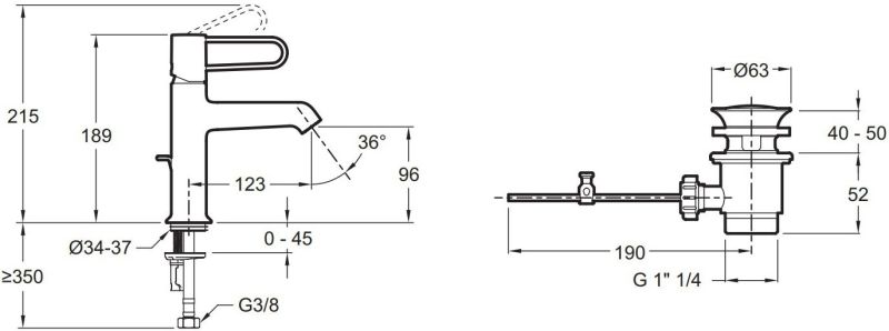 - Керамический дисковый картридж 25 мм интегрирован в корпус смесителя и дает точную регулировку температуры