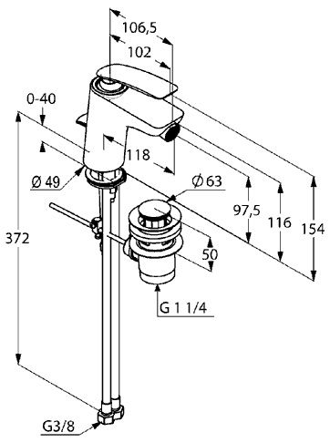 - однорычажный смеситель для биде DN 15