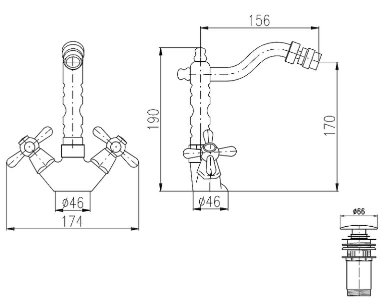 Комплектация: смеситель для биде, донный клапан, подводка