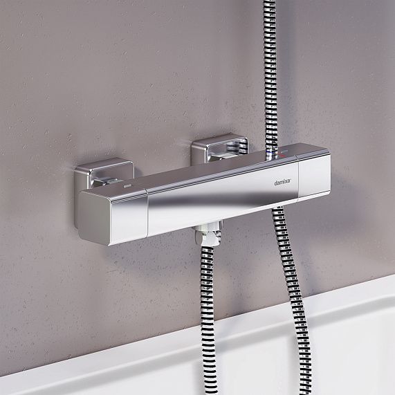 Смеситель для душа Damixa Gala 536000000 хромТермостатический смеситель для душа Gala идеально впишется в современную ванную комнату. Максимальная безопасность: термостатический картридж 35мм обеспечивает точную настройку температуры и напора воды. Специальная кнопка-предохранитель не позволяет случайно повысить температуру воды. Выставляйте комфортные для вас параметры легким поворотом правой ручки смесителя. Переключайте потоки воды между лейкой и верхним душем поворотом левой ручки смесителя. Инновационное покрытие High Gloss надежно защищает хромовую поверхность смесителя от мелких повреждений и сохраняет ювелирный блеск на долгие годы. Такой смеситель прослужит вам минимум 10 лет