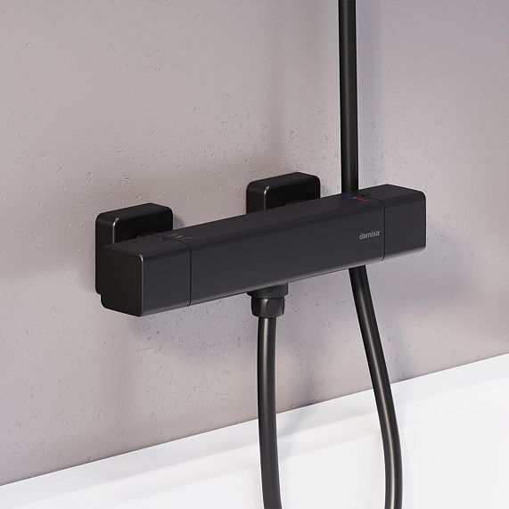 Смеситель для душа Damixa Gala 536000300 черныйТермостатический смеситель для душа Gala идеально впишется в современную ванную комнату. Максимальная безопасность: термостатический картридж 35мм обеспечивает точную настройку температуры и напора воды. Специальная кнопка-предохранитель не позволяет случайно повысить температуру воды. Выставляйте комфортные для вас параметры легким поворотом правой ручки смесителя. Переключайте потоки воды между лейкой и верхним душем плавным поворотом левой ручки смесителя. Инновационное PVD-покрытие гарантирует чрезвычайную прочность смесителя. Матово-черная поверхность не выцветает с годами и устойчива к механическим повреждениям загрязнениям и отпечаткам пальцев. Такой смеситель прослужит вам минимум 10 лет.