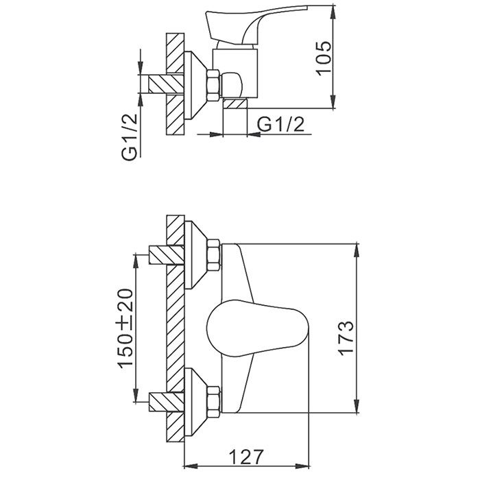 Способ монтажа:На два отверстия, Настенные