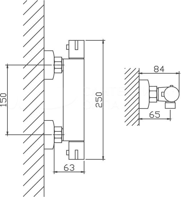 Смеситель изготовлен из латуни.Диаметр декоративных чашек 70 мм.Душевой гарнитур в комплекте.Межосевое расстояние (расстояние между выходом горячей и холодной трубы) 150 мм.Данное расстояние изменяется за счет входящих в комплект эксцентриков на 10 мм. в большую или меньшую стороны.Цвет хром.