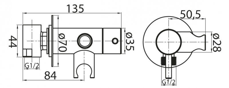 Оснащение: штуцер с держателем для душа,