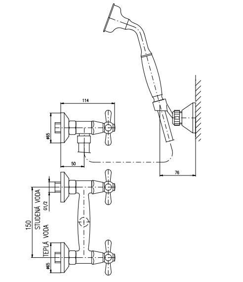 Смеситель для душа Rav Slezak Morava Retro MK180.5/2Z золото
