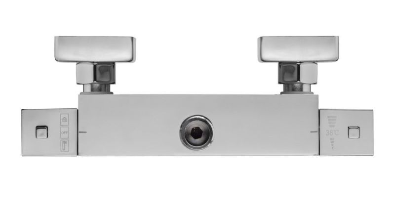 Термостатический смеситель для душа с верхним подключениемКерамическая кран букса.Термостатический картридж с шумоподавлением.Обратные клапаны. Ограничитель температуры 38°.Эксцентрики и декоративные накладки.Гигиенически стабильная латунь с высоким содержанием меди.