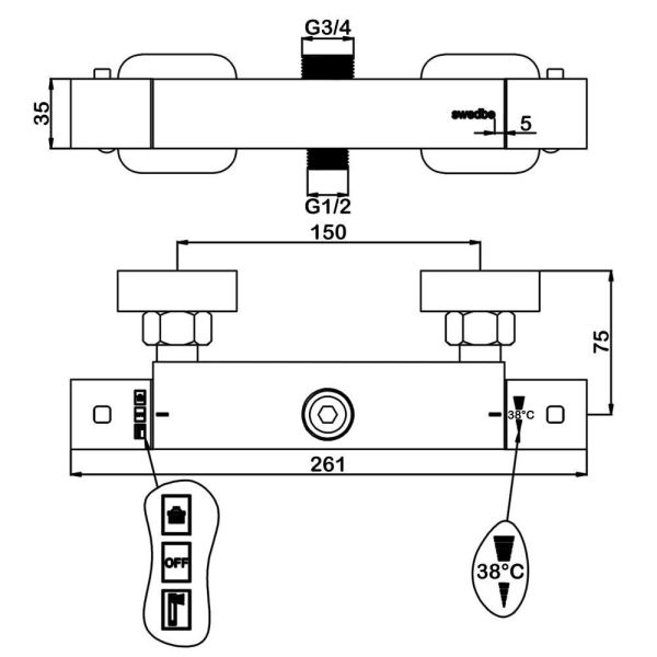 Смеситель для душа Swedbe Hermes 9023 термостатический хром Смеситель для душа Swedbe Hermes 9023 термостатический хром Казань 11449.50 15266.00 SWEDBE