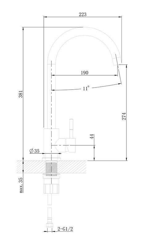 Высота смесителя:38.1