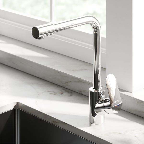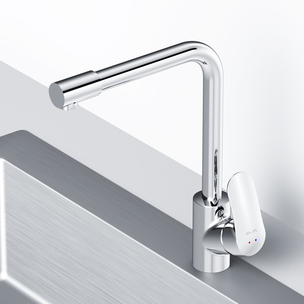 Долгожданное пополнение в линейке кухонных смесителей Like – смеситель для кухни со встроенным каналом для питьевой воды. L-образная архитектура излива позволит разместить смеситель на мойке любого размера и даже под низкими шкафчиками при полном сохранении функционала и комфорта в использовании.Смеситель оснащен встроенным каналом для питьевой воды. Благодаря прогрессивной технологии Fresh Boost при вращении ручки на 90 градусов вы можете наслаждаться чистой питьевой водой. Для получения обычной воды, просто управляйте смесителем привычным способом.Эксклюзивная разработка для АМ.РМ: специально спроектированный керамический картридж SoftMotion 35 мм обеспечивает низкий уровень шума, выдерживает любые перепады давления в водопроводной сети