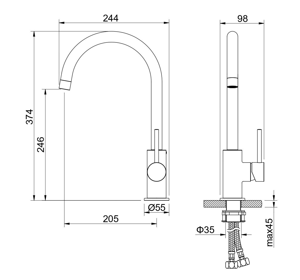 • Оптимальная длина подводки, все необходимое для монтажа в комплекте
