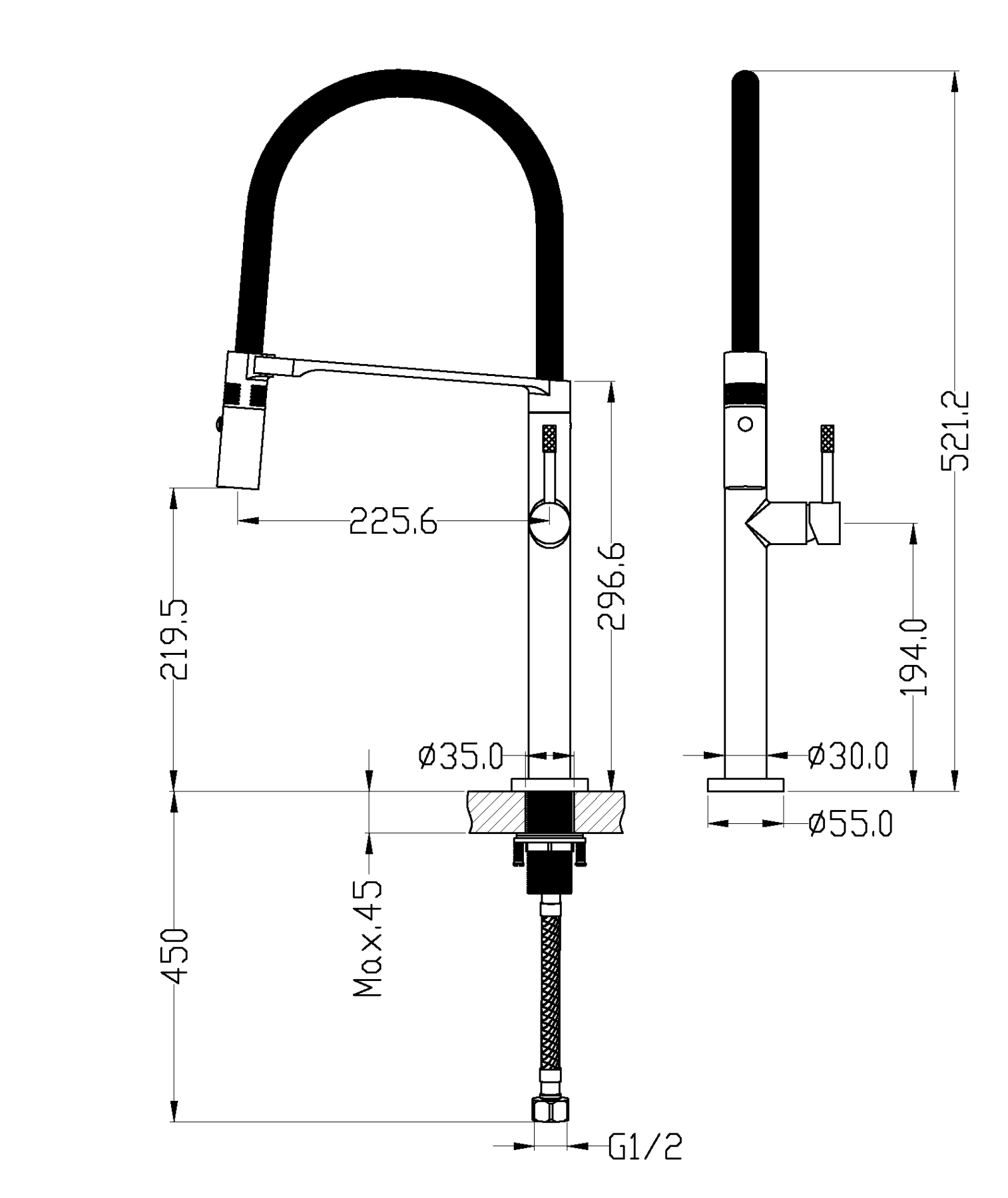 Высота смесителя:55.2