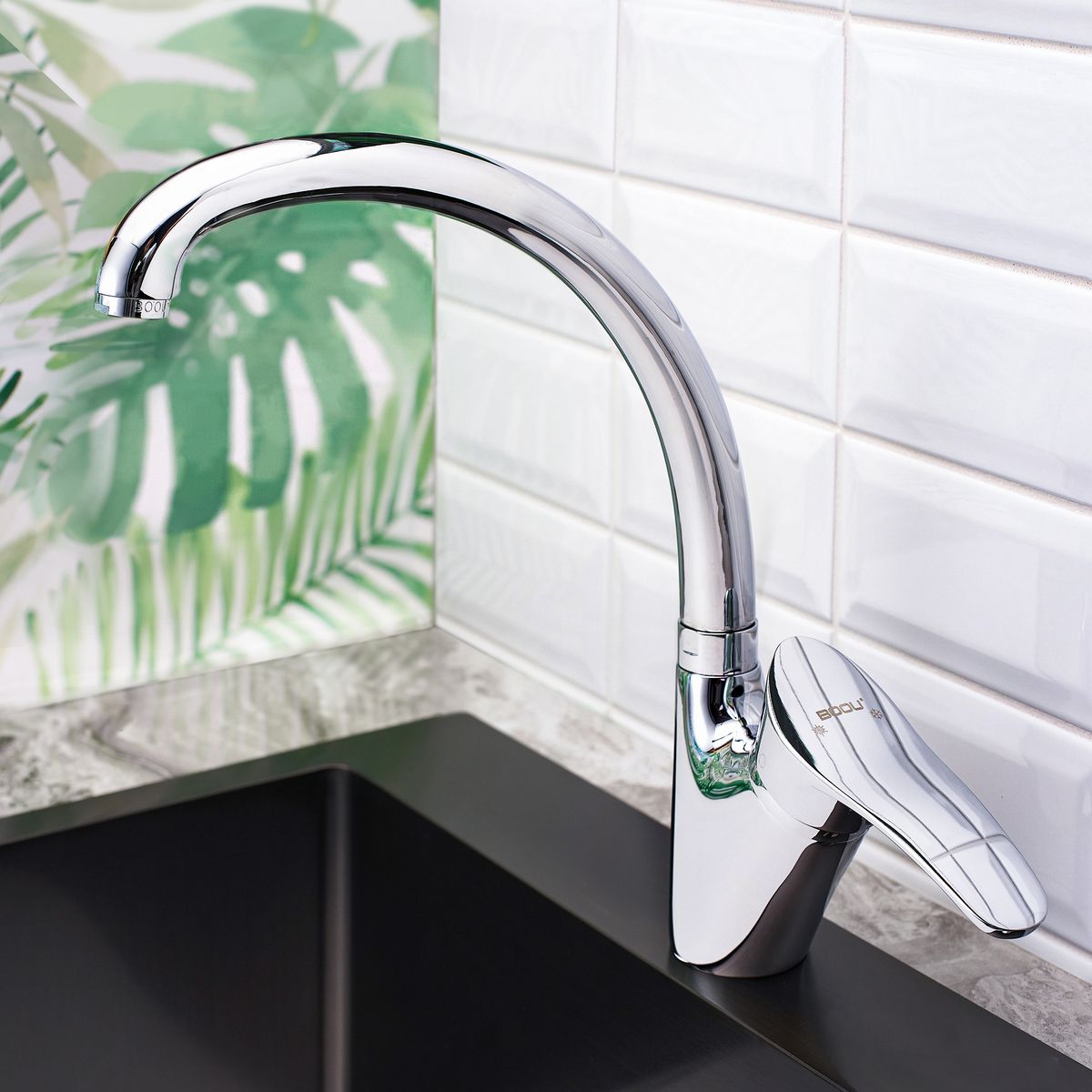 Смеситель ТМ BOOU вобрал в себя современный дизайн и непревзойденную функциональ-ность. Для управления напором и температурой предусмотрен эргономичный рычаг. Высо-кий поворотный излив удобен для мытья посуды и гигиенической уборки и позволяет направлять поток воды в нужную сторону.