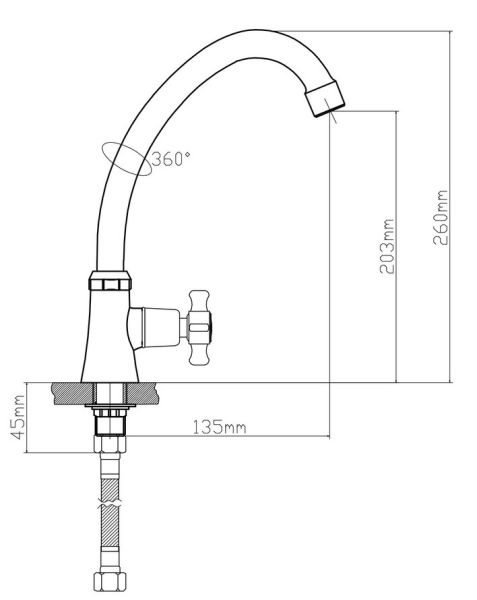 Смеситель для одной воды ТМ BOOU, предусматривает подключение только к холодной во-де. Имеет трубчатый излив в форме буквы J, удобен для наполнения высоких емкостей и мы-тья габаритной посуды.