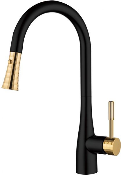 Смеситель для кухни DQ Rhein Schiller с выдвижной лейкой чёрный/золото DA1462517A купить