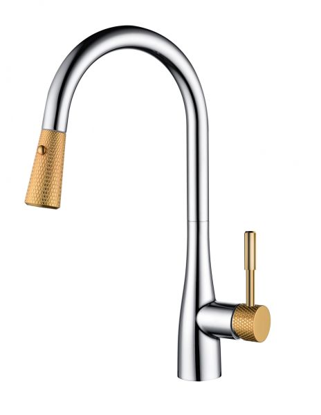 Смеситель для кухни DQ Rhein Schiller с выдвижной лейкой хром/золото DA1462504D купить