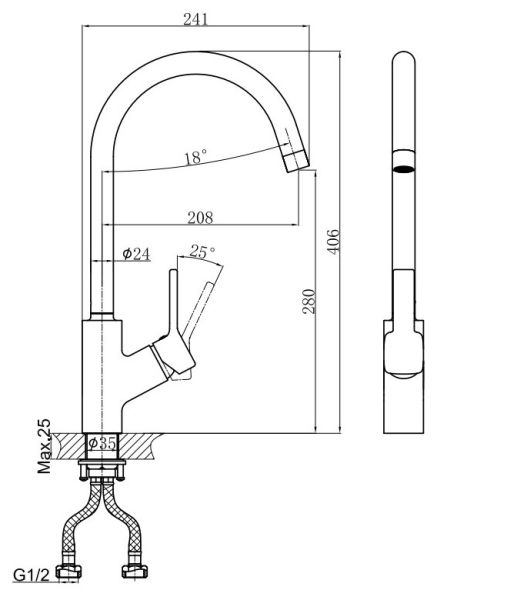 Гибкий излив:нет