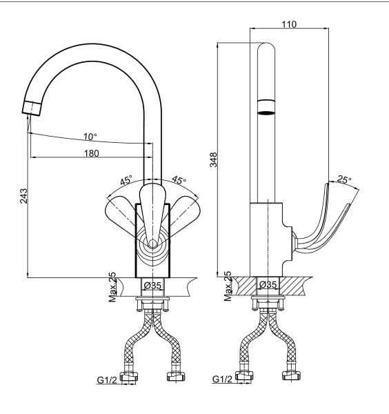Высота смесителя:34.8