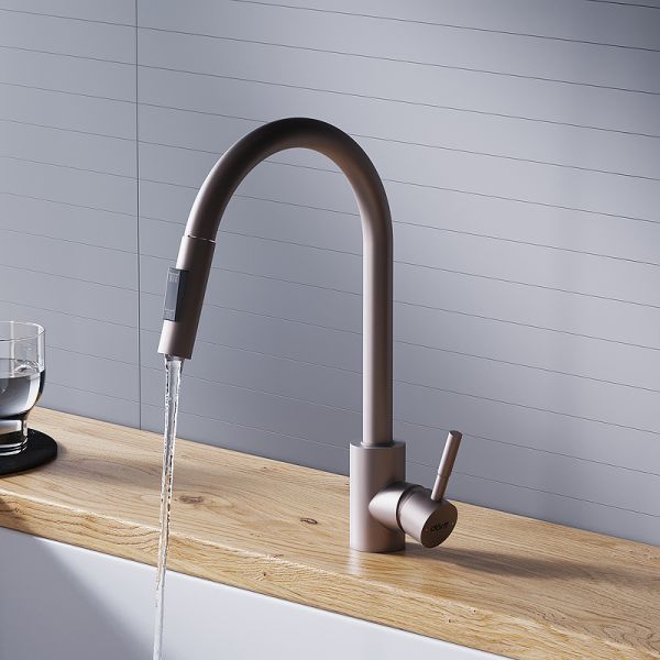Оригинальное решение для кухни - смеситель для мойки с вытягивающимся изливом. В носике смесителя встроен вытягивающийся душ, благодаря которому так просто поддерживать гигиеническую чисоту на кухне и наполнять любые емкости! Утонченный элегантный дизайн сохранит свою актуальность на долгие годы и останется украшением на вашей кухне. Удобная эргономичная ручка-стик обеспечивает легкое управление напором воды в одно касание.