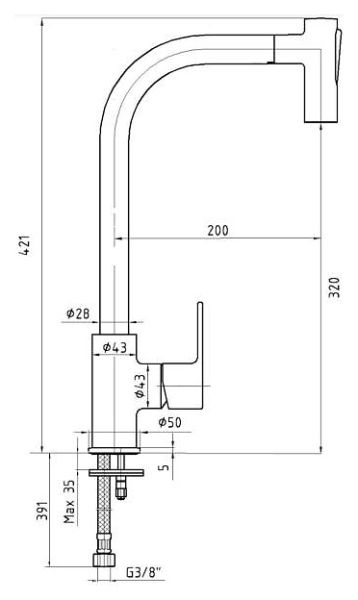 - Длина излива: 20 см
