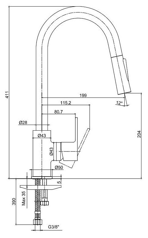 - Длина излива: 19.9 см