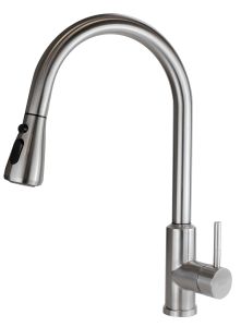 Смеситель для кухни, R-излив, вытяжной, touch element, нержавеющая сталь, арт. TSS 519: Технологичность и стиль для вашей кухни.Хотите сделать свою кухню еще более современной и удобной? Смеситель TSS 519 – это идеальное решение! Сенсорное управление позволит включать и выключать воду одним касанием, а вытяжной излив из нержавеющей стали обеспечит максимальный комфорт при мытье посуды. Два режима аэратора и прочная конструкция делают этот смеситель незаменимым помощником на кухне.Преимущества:Сенсорное управление: гигиенично и удобно.