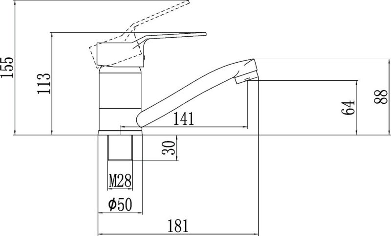 - Высота с поднятым рычагом: 155 мм