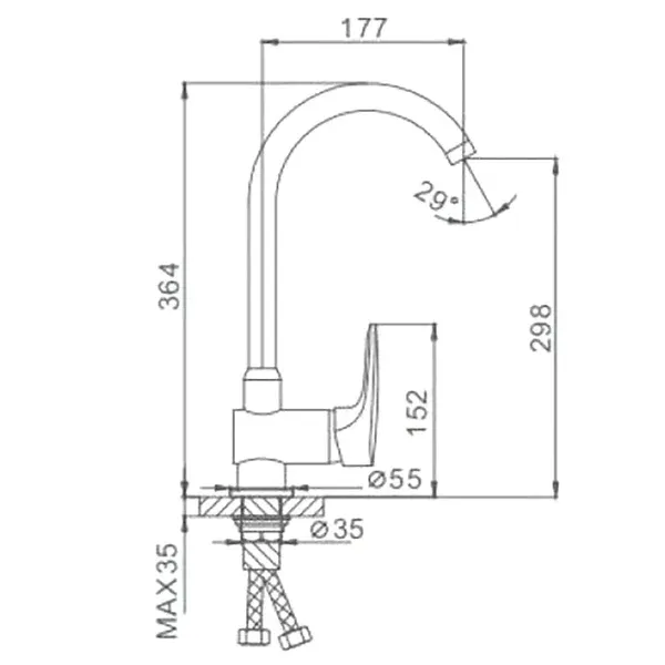 Высота смесителя:36.4
