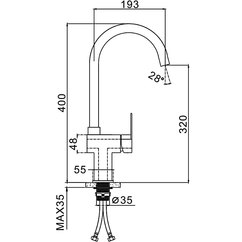 Высота смесителя:40