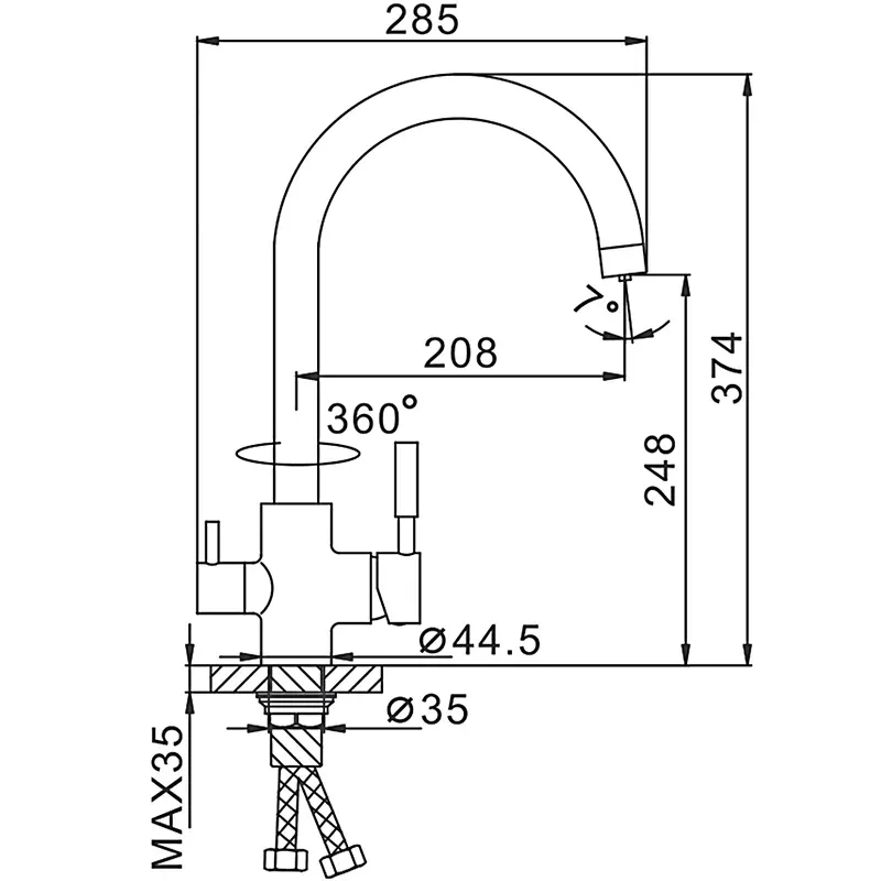 Высота смесителя:37.4