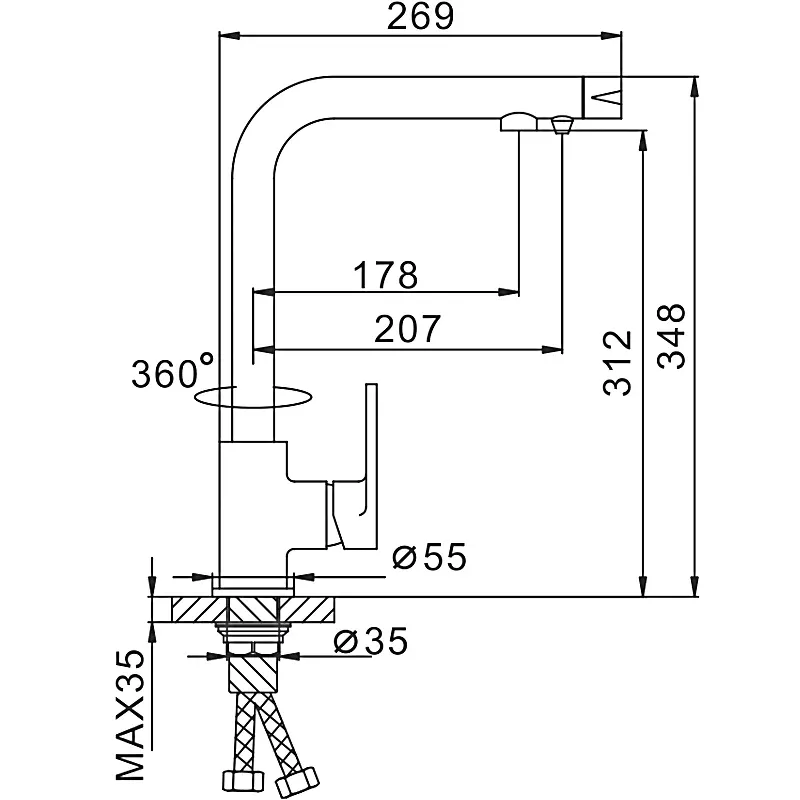 Высота смесителя:34.8
