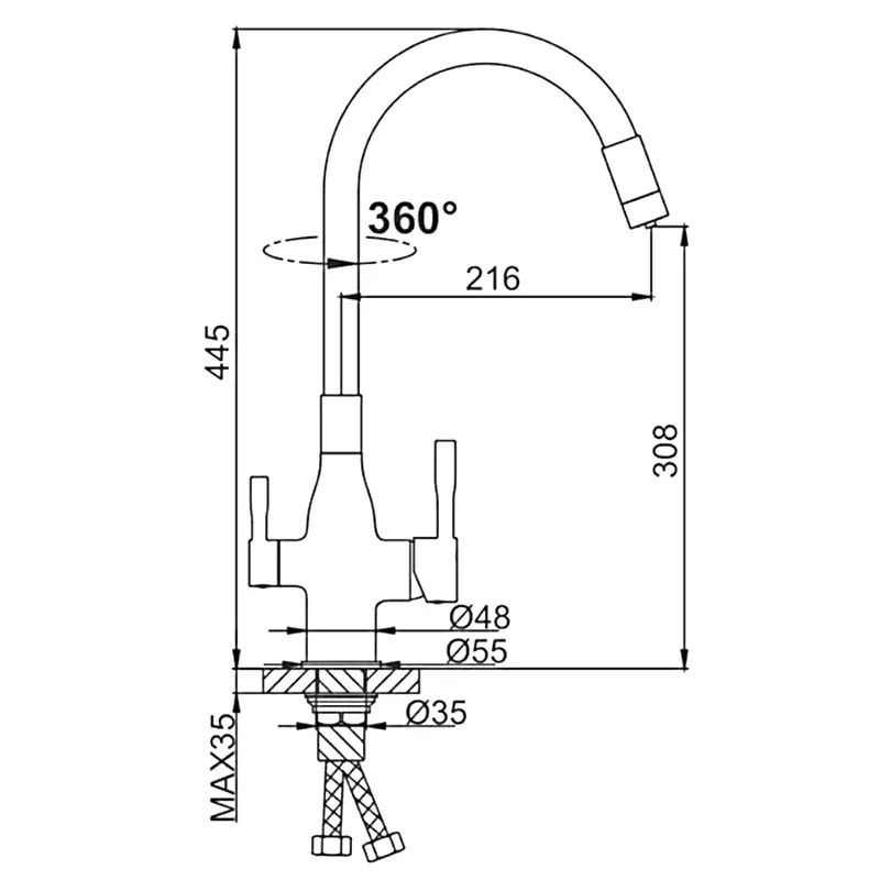 Высота смесителя:44.5
