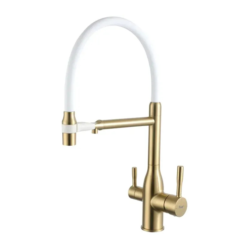 Смеситель для кухни Frap F4398-3 белый золотой сатин купить