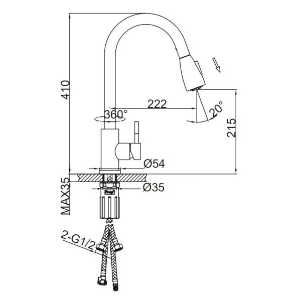 Функции излива:Выдвижной, Поворотный