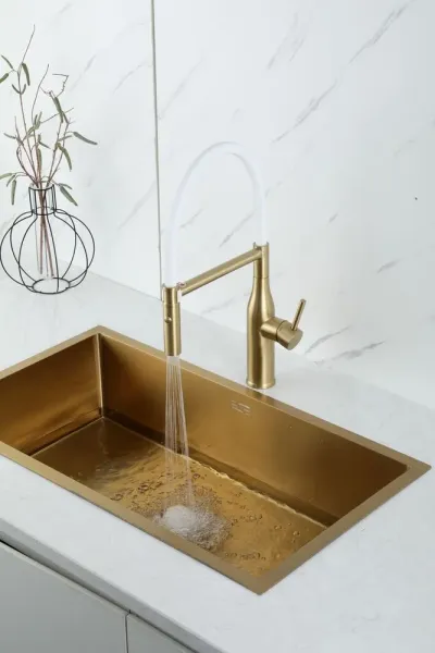 Смеситель для кухни Gappo G4098-23 с гибким изливом золотой сатин купить